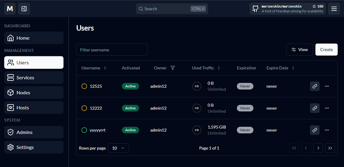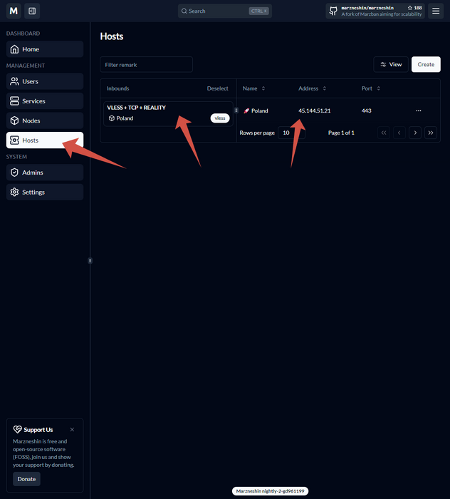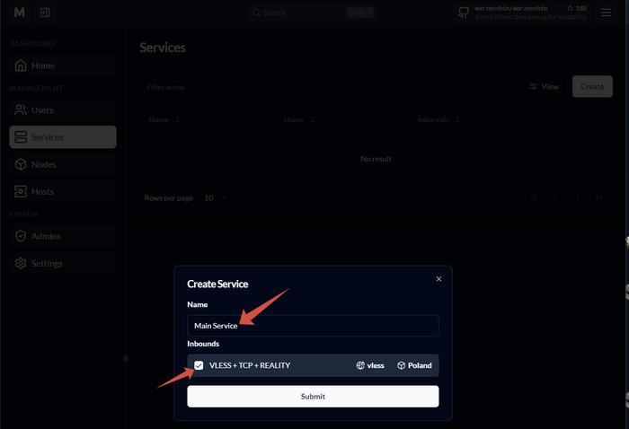 Всем привет! Давно обещал эту тему, публикую. Пожалуй это будет первая русскоязычная инструкция по Marzneshin. Начнем. Marzneshin - это форк Marzban, от тех кто устал от долгого развития Marzban и того что многие классные идеи так и не были приняты в основную редацию Marzban. Отдельная команда пересмотрела концепцию Marzban и теперь это Marzneshin. В чем основные отличия: Появляется сущность Services (Сервисы). Клиентам назначаются именно они. У каждой ноды - свое ядро и свои настройки (это круто!) Появляется сущность Хостов - где к каждому серверу вы можете создать свой хост. Хосты в дальнейшем могут как угодно группироваться в Сервисах. 1. Немного теории. Мэйн сервер где будет у нас стоять Marzneshin - мы использовать его не будем для подключений пользователей (согласно моей концепции ФенШуя) Устанавливать Мэйн мы будем на РУ-сервер. На этот сервер поставим сразу Caddy чтобы спрятать страницы за обратный прокси. в UFW Будут открыты только 443 порт и порт SSH. Мы будем конечно же ставить вместе с MySQL базой (в установщике Marzneshin эта опция встроена) Настройка ноды будет во второй статье. 2. Оформляем сервер. Я бы вам посоветовал взять сервер у Vscale.io, но они закрываются и переезжают на Selectel.. а цены сохранят только для старых клиентов, новые регистрации больше не принимают. Поэтому, я нашел для вас отличную замену. https://procloud.ru?referral_id=274473 У этих ребят есть РФ контора, и зарубежная 3hcloud. Если вы все же, хотите максимальную надежность корпоративного уровня и не страдать от ДДОС-атак, то лучше раскашелиться на надежный https://selectel.ru/?ref_code=8d43638548 И тут я хочу сделать небольшой акцент на том, что мэйн сервер - он должен быть обязательно НАДЕЖНЫМ. Если вы выходите на коммерческое использование, и зарабатываете на своем VPN, то лучшее решение для вас (при выходе на стабильный доход) - это сервера у гигантов инфраструктуры в РФ - https://cloud.vk.com/ и https://yandex.cloud/ Поверьте, лучше стабильно переплачивать за стабильность и надежность инфры, чем каждый раз ругаться на недоступность и перебои в работе. Поэтому даже Cloud Server у них за 3000 в месяц - окупит себя сполна в плане надежности, стабильности и качества услуг! Ладно. Это вам на подумать. Это как купить надежную машину для путешествий, а не Lada Granta и поехать в кругосветку.. Если вы будете брать для "прода", то берем сервер 2ЦП, 4Гб памяти. Диск желательно не меньше 20Гб, но брать больше 30-40гб нет смысла. Я беру для ДЕМО, поэтому беру лайтовый. Я уверен вы ребята уже опытные, поэтому как подключаться к серверу я писать не буду 3. Установка Официальный репозиторий https://github.com/marzneshin/marzneshin отправляет нас на документацию: https://docs.marzneshin.org/ Находим базовую установку: https://docs.marzneshin.org/docs/getting-started/basic-install/ Нас интересует версия с MariaDB, хорошо что она есть. 3.1. Первым делом запускаем обновление системы: apt update && apt upgrade -yqq 3.2. Запускаем установку с MariaDB: (докер и все необходимые сервисы тоже установятся) sudo bash -c "$(curl -sL https://github.com/marzneshin/Marzneshin/raw/master/script.sh)" @ install --database mariadb жмем: Ctrl + C чтобы закрыть ЛОГИ 3.3. Создаем администратора в базе marzneshin cli admin create --sudo 3.4. Останавливаем контейнеры. marzneshin down 3.5. Ставим Caddy sudo apt install -y debian-keyring debian-archive-keyring apt-transport-https curl curl -1sLf 'https://dl.cloudsmith.io/public/caddy/stable/gpg.key' | sudo gpg --dearmor -o /usr/share/keyrings/caddy-stable-archive-keyring.gpg curl -1sLf 'https://dl.cloudsmith.io/public/caddy/stable/debian.deb.txt' | sudo tee /etc/apt/sources.list.d/caddy-stable.list sudo apt update sudo apt install caddy 3.6.1. Ставим мой сервис CADD: sudo nano /usr/local/bin/cadd 3.6.2. Заполняем: #!/bin/bash CONFIG_FILE="/etc/caddy/Caddyfile" # Путь к файлу конф